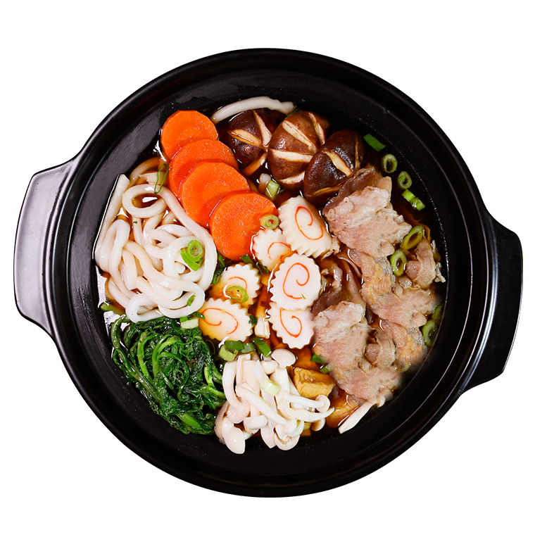 牛肉、烏冬面、包心魚豆腐、凍豆腐、香菇、胡蘿卜、葡萄酒、釀造醬油、冰糖