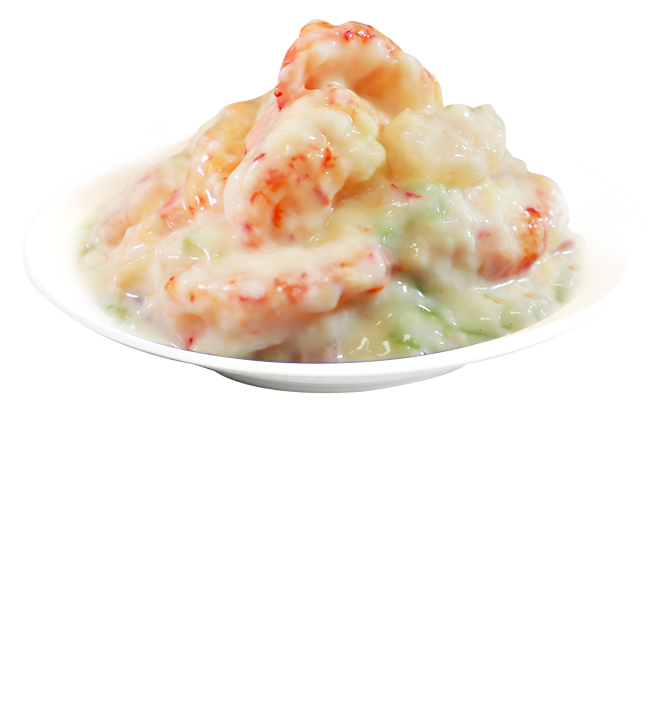 沙拉醬、小龍蝦、蝦仁、雞蛋、貢菜